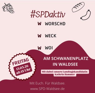 Wir stehen am 13. März ab 15 Uhr auf dem Schwanenplatz in Waldsee.